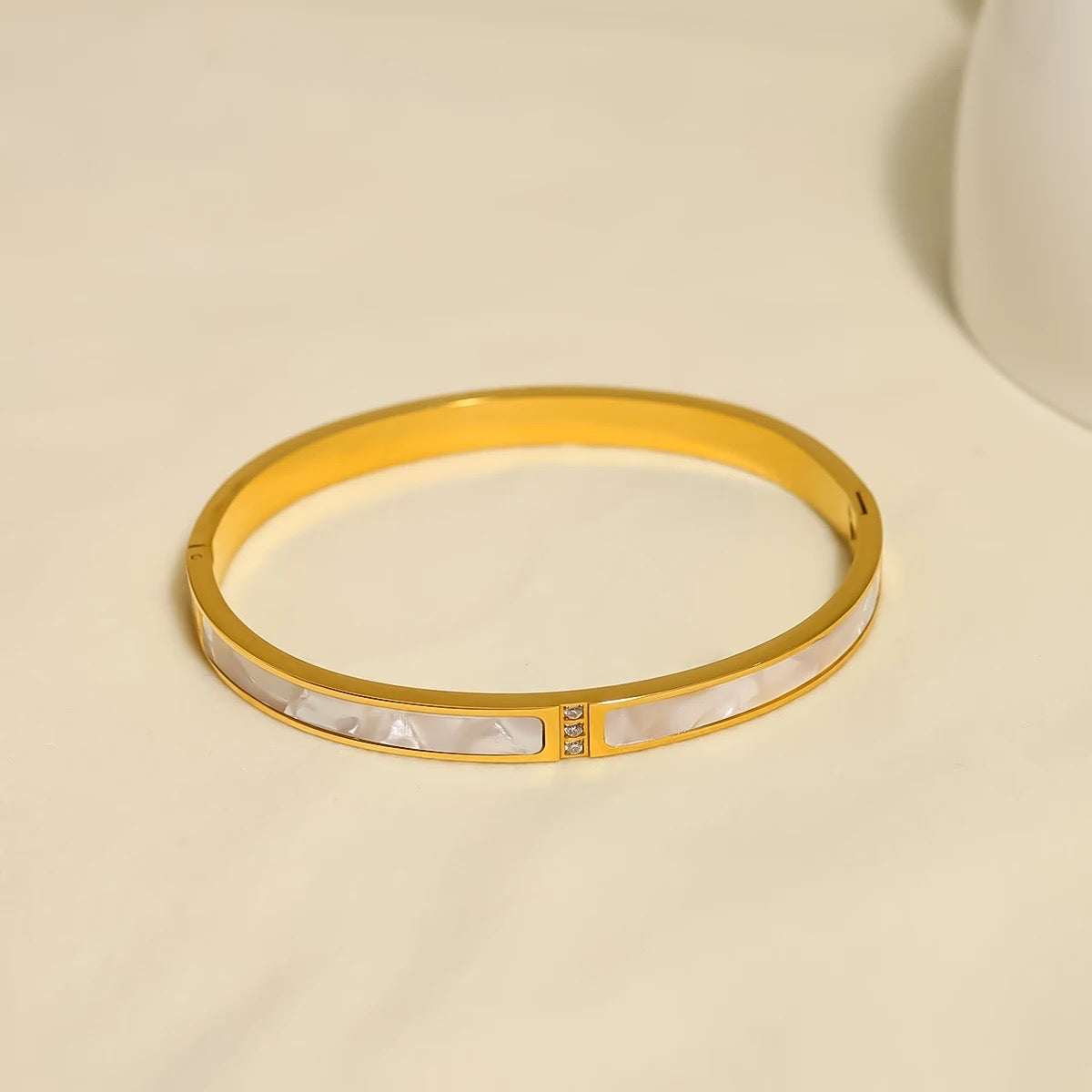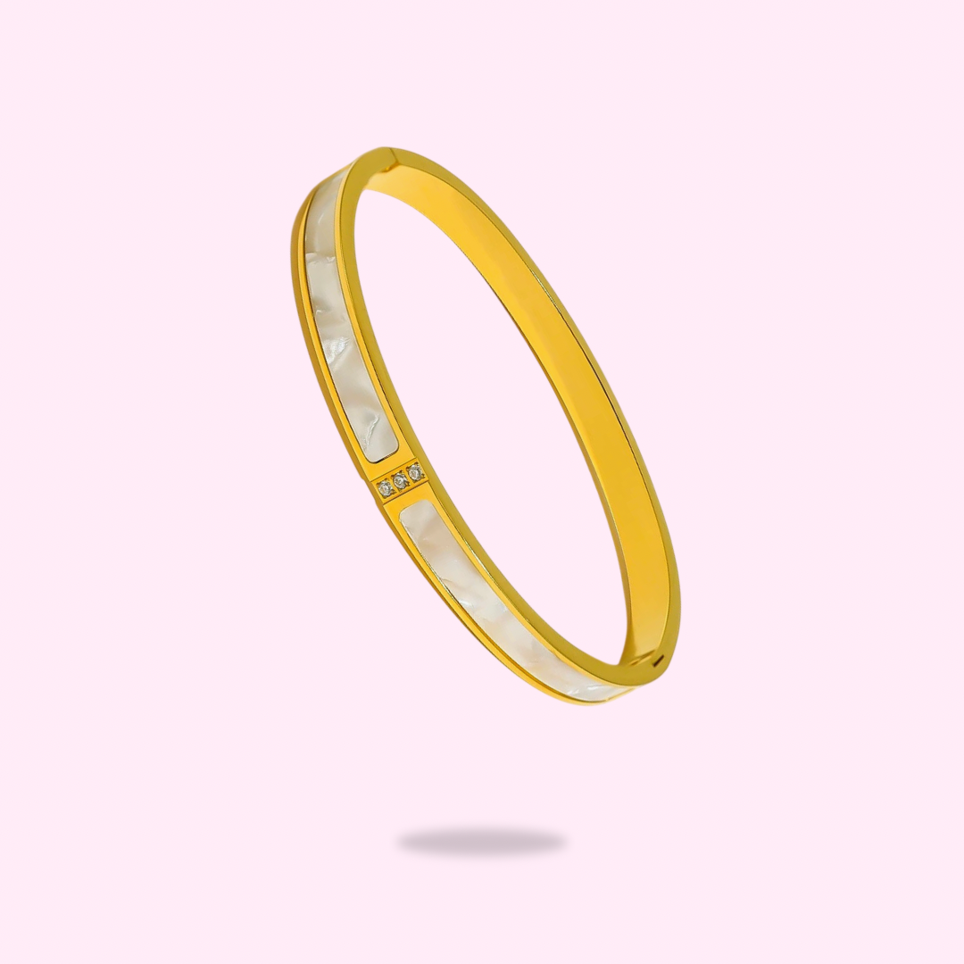 Bracelet jonc en acier inoxydable avec nacre